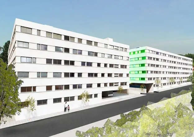 Finalmente ganado el concurso, el edificio se desarrolló cambiándose algunos de los planteamientos iniciales por soluciones más económicas.
