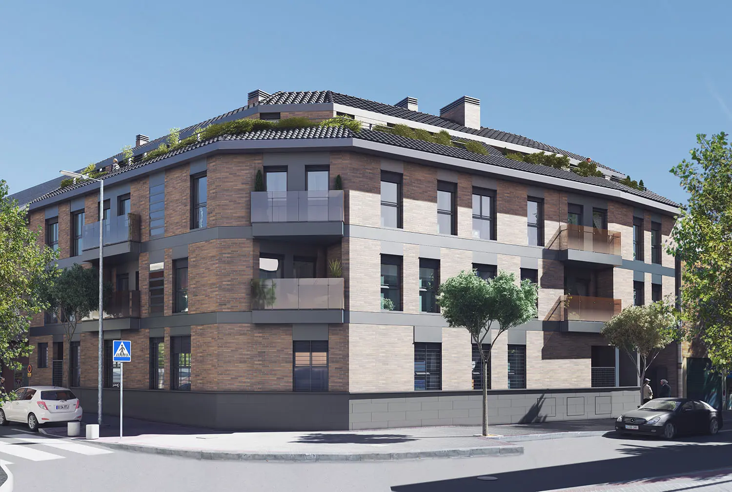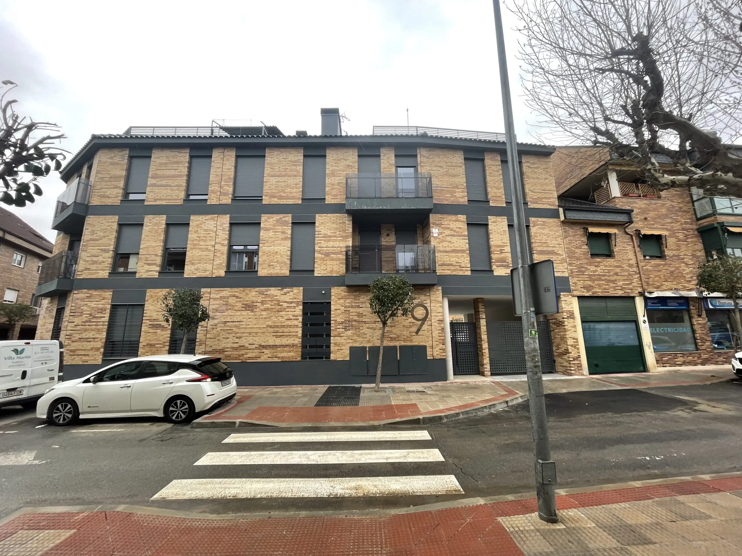 El edificio se sitúa en Villanueva del Pardillo, y más concretamente en un entorno urbano un tanto irregular. Se propone una elegante combinación de ladrillo cara vista destonificado que guardará la estética de las fachadas de edificios adyacentes, al cual se le implementan una serie de elementos ornamentales en color gris oscuro. Todo un volumen donde predominan los tonos rojizos y marrones queda articulado por un zócalo inferior y una cubierta inclinada que culmina la edificación.