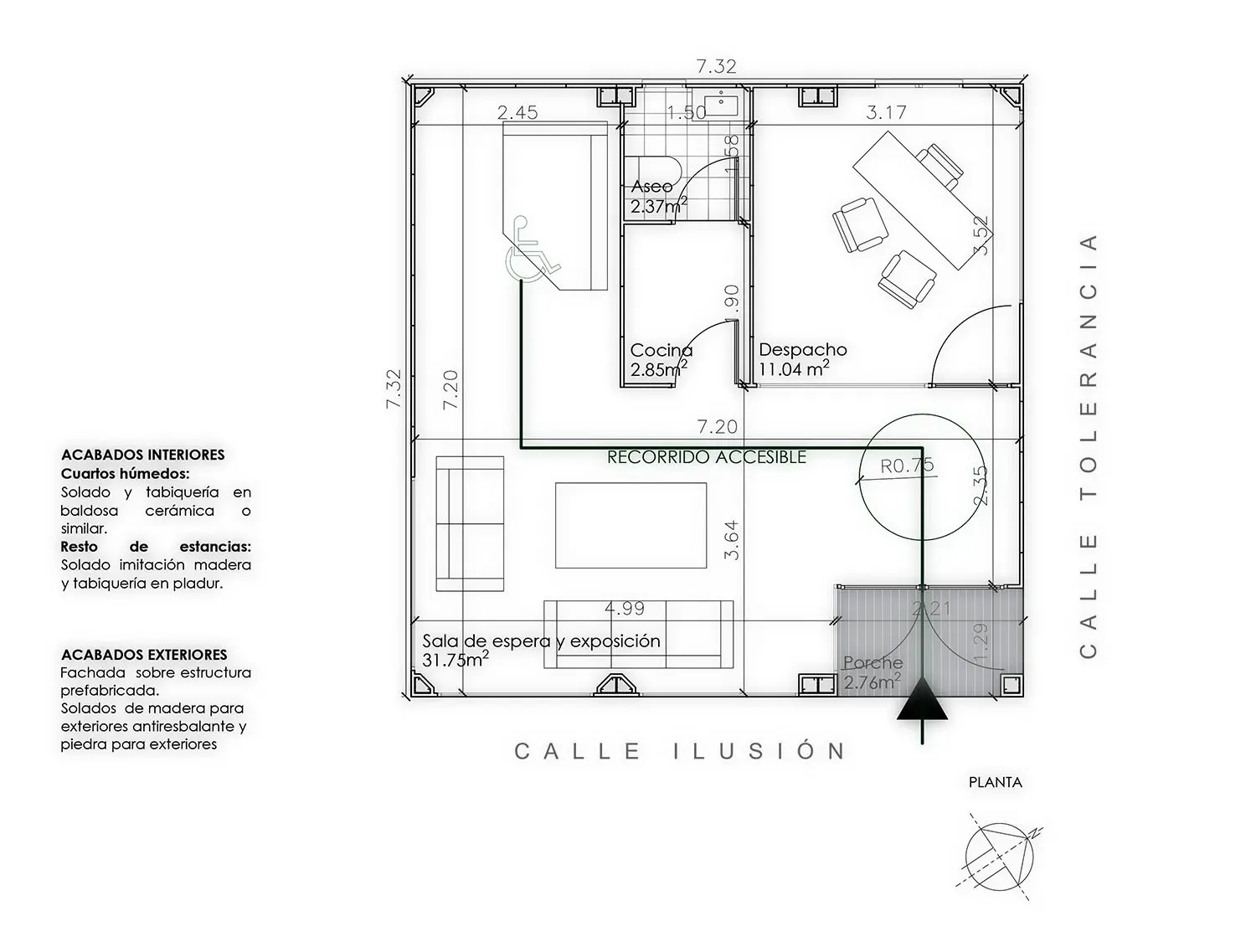 Se trata de un local de una planta destinado a uso de oficina temporal de información y venta de la promoción Residencial Loira, llevada a cabo por el mismo estudio. De acuerdo con el uso que va a albergar, se plantea la utilización de un sistema prefabricado que incluya estructura, instalaciones interiores y acabados, con la previa realización de la cimentación correspondiente para el apoyo de la caseta. El interés de este proyecto reside en su elegante volumen, capaz de plasmar la esencia del edificio al que se le hace promoción.