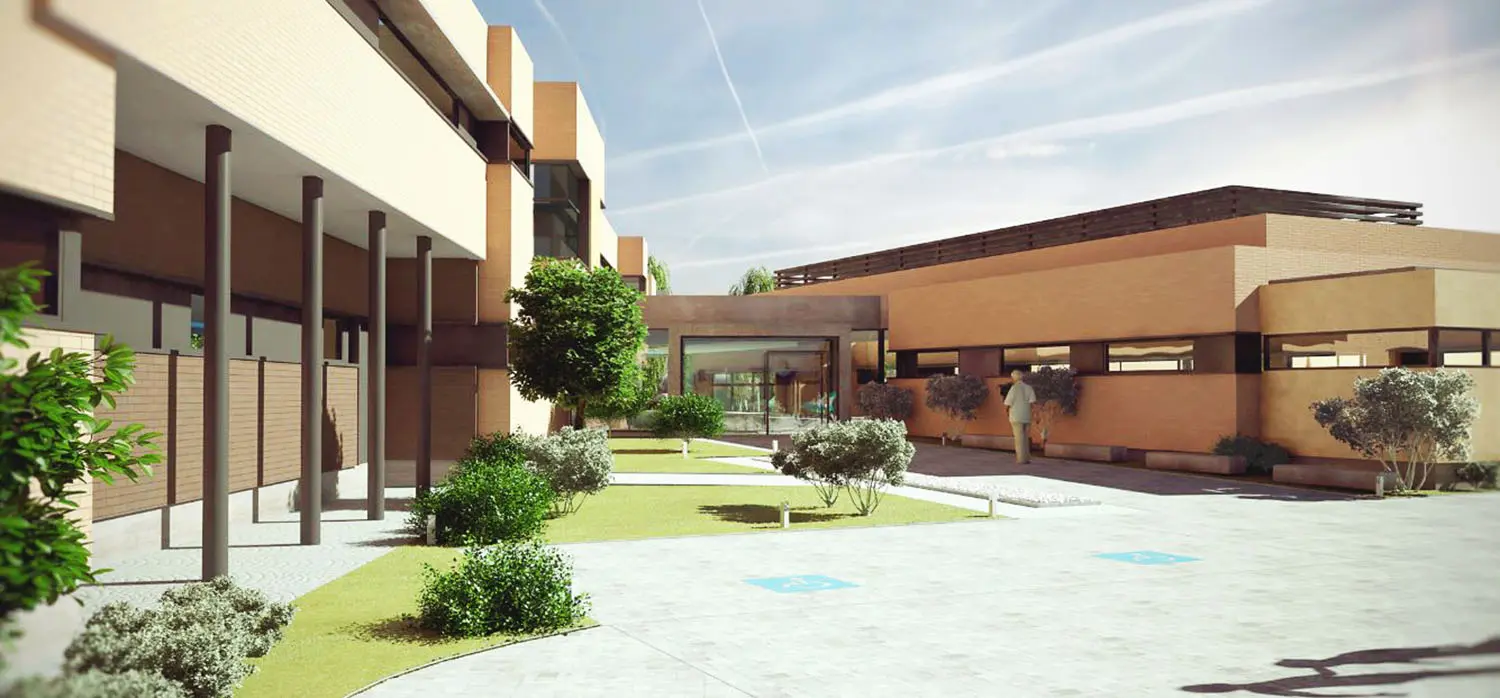 El centro se desarrolla principalmente en planta baja, pero no en toda su extensión ya que las plazas de aparcamiento ocupan parte de la zona de urbanización para ahorrar costes innecesarios. Como mejora del comportamiento energético del edificio, se decide de base prescindir de lucernarios y dobles alturas. El pabellón septentrional sirve de telón de fondo de todo el conjunto, como si la parcela fuera una grada que mira hacia este escenario, simulando un espejo que da una imagen luminosa a todo el conjunto.