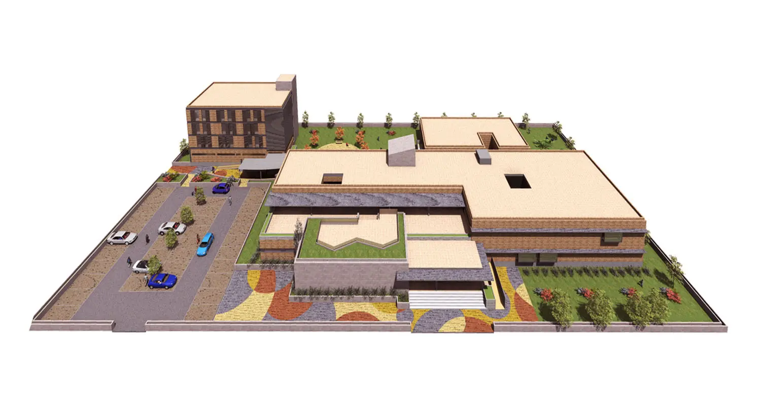Para la solución del bloque principal, que aloja un programa funcional complejo, se emplean 2 criterios básicos, sencillez en su diseño y construcción, así como fácil orientación para usuarios. De esta forma, se plantea un edificio alargado cuya entrada está en su centro permitiendo una rápida información y atención a los clientes.