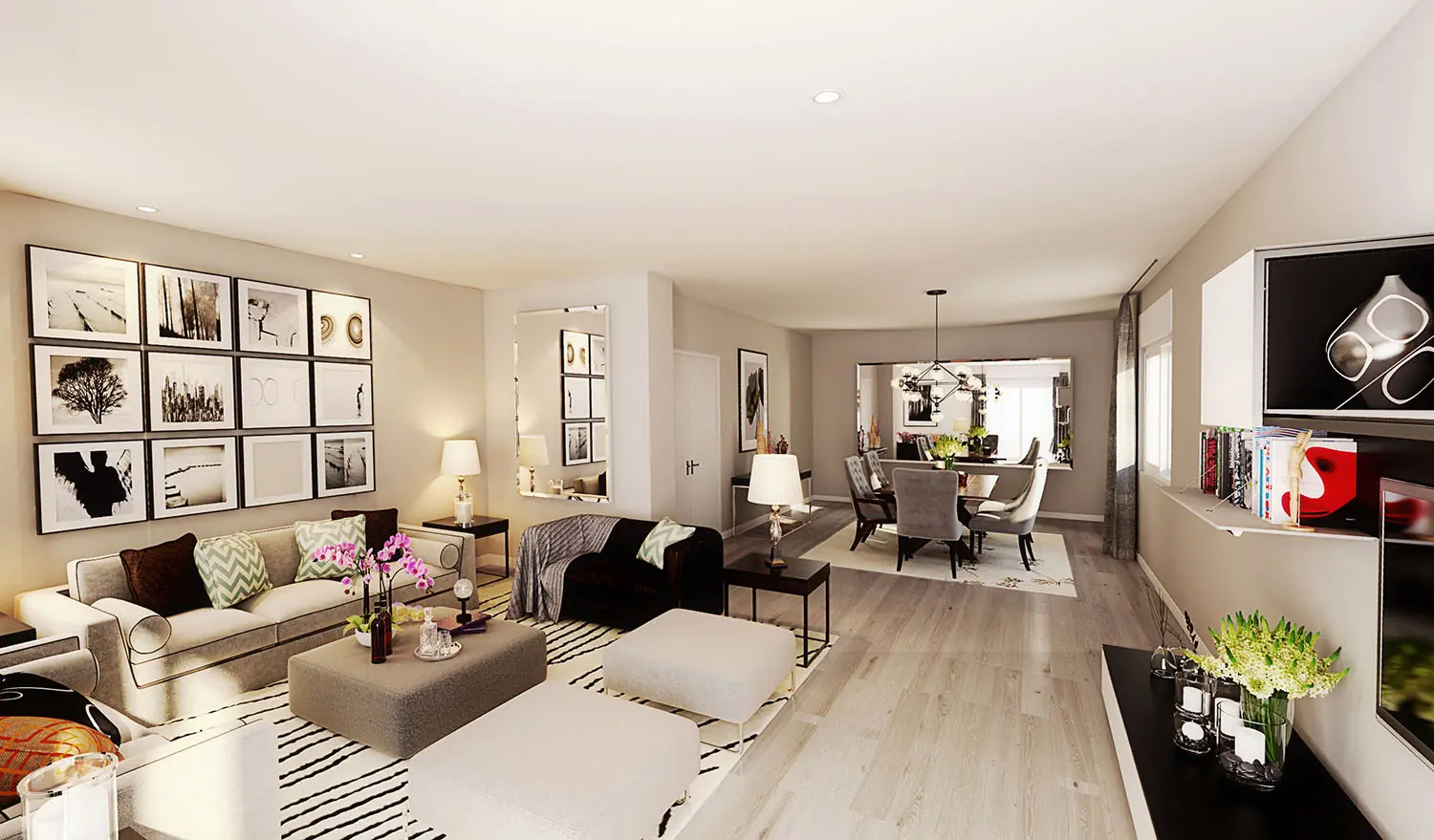 Se establece una distribución de dos portales casi simétricos, accesibles desde la urbanización y conectados mediante planta baja y sótano. La planta tipo de la promoción cuenta con 10 viviendas, de las cuales 6 pertenecen a un portal y las 4 restantes al otro. En las plantas superiores disminuye el número de viviendas para dotar de terrazas a algunas de ellas sin computar. La planta baja de la promoción desempeña la función de articular la totalidad de espacios comunes de la promoción.