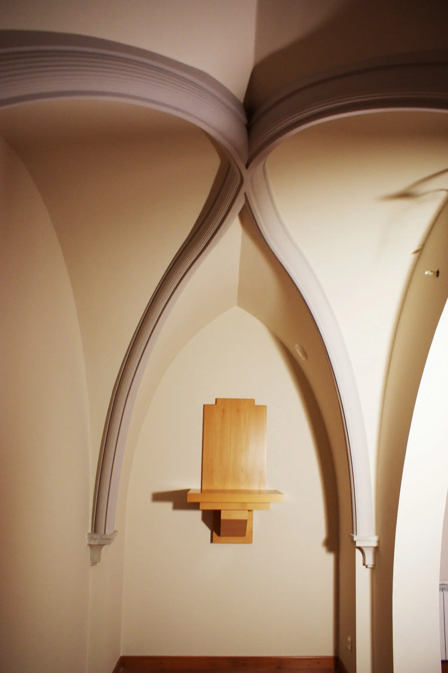 El presente proyecto se consolida como uno de los trabajos con mayor complejidad técnica, porque al margen de todas las decisiones relativas a instalaciones y cerramientos que se tomaron, se decidieron suplementar una serie de elementos de arquerías y bóvedas en un espacio destinado a capilla. Para el desarrollo y ejecución de estos trabajos fue totalmente necesario el conocimiento de técnicas constructivas no utilizadas habitualmente.
