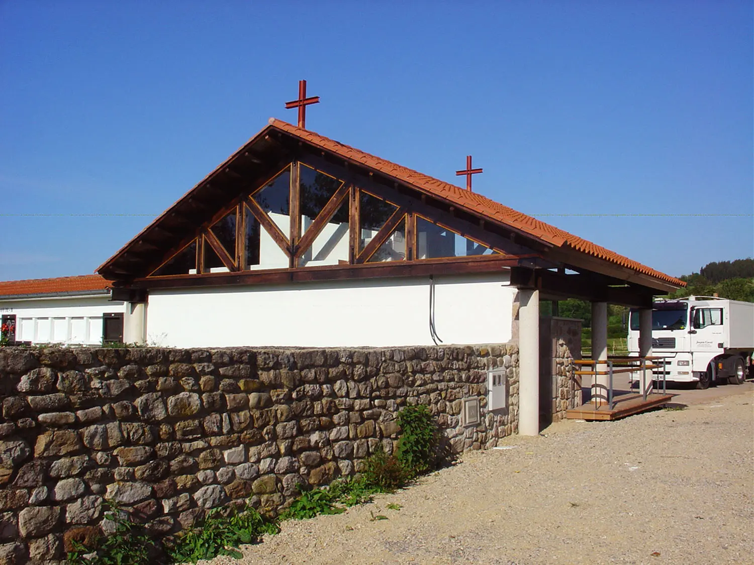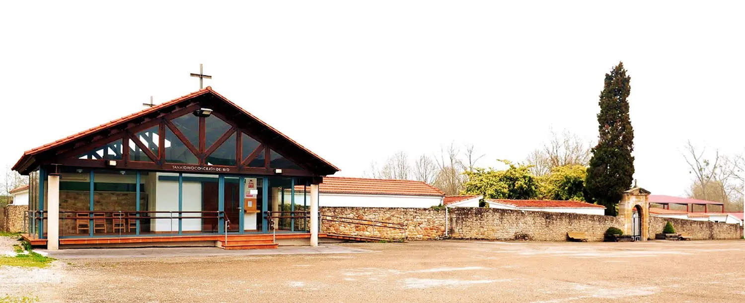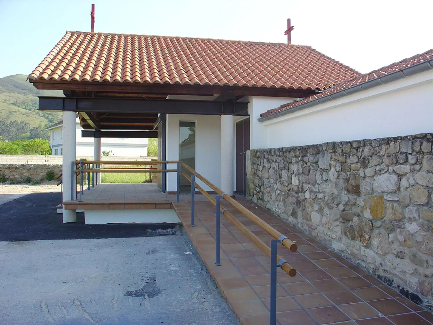 Se trata de un edificio de reducidas dimensiones situado de forma anexa al cementerio, en el exterior del núcleo urbano de Herrera de Ibio. El tanatorio se presenta como la mínima expresión para albergar el paquete programático originario de este proyecto. Éste plantea una gran cubierta a dos aguas de teja roja muy común en la zona, sustentada por una estructura de cerchas de madera. El edificio queda resuelto con el material perteneciente al muro de cerramiento del cementerio, el blanco de algunos paramentos y un tono gris oscuro para algunas carpinterías y vigas metálicas que forman parte del sistema estructural de la cubierta.