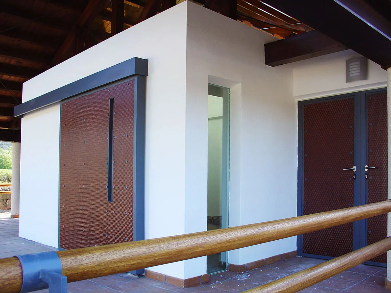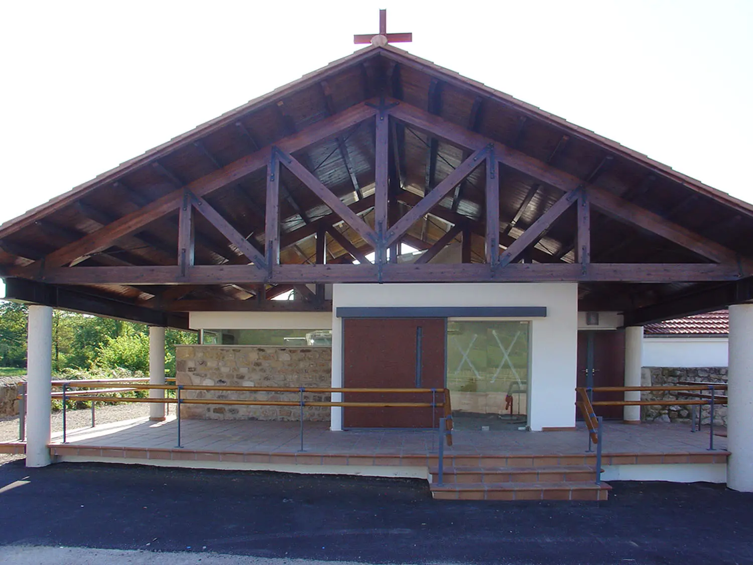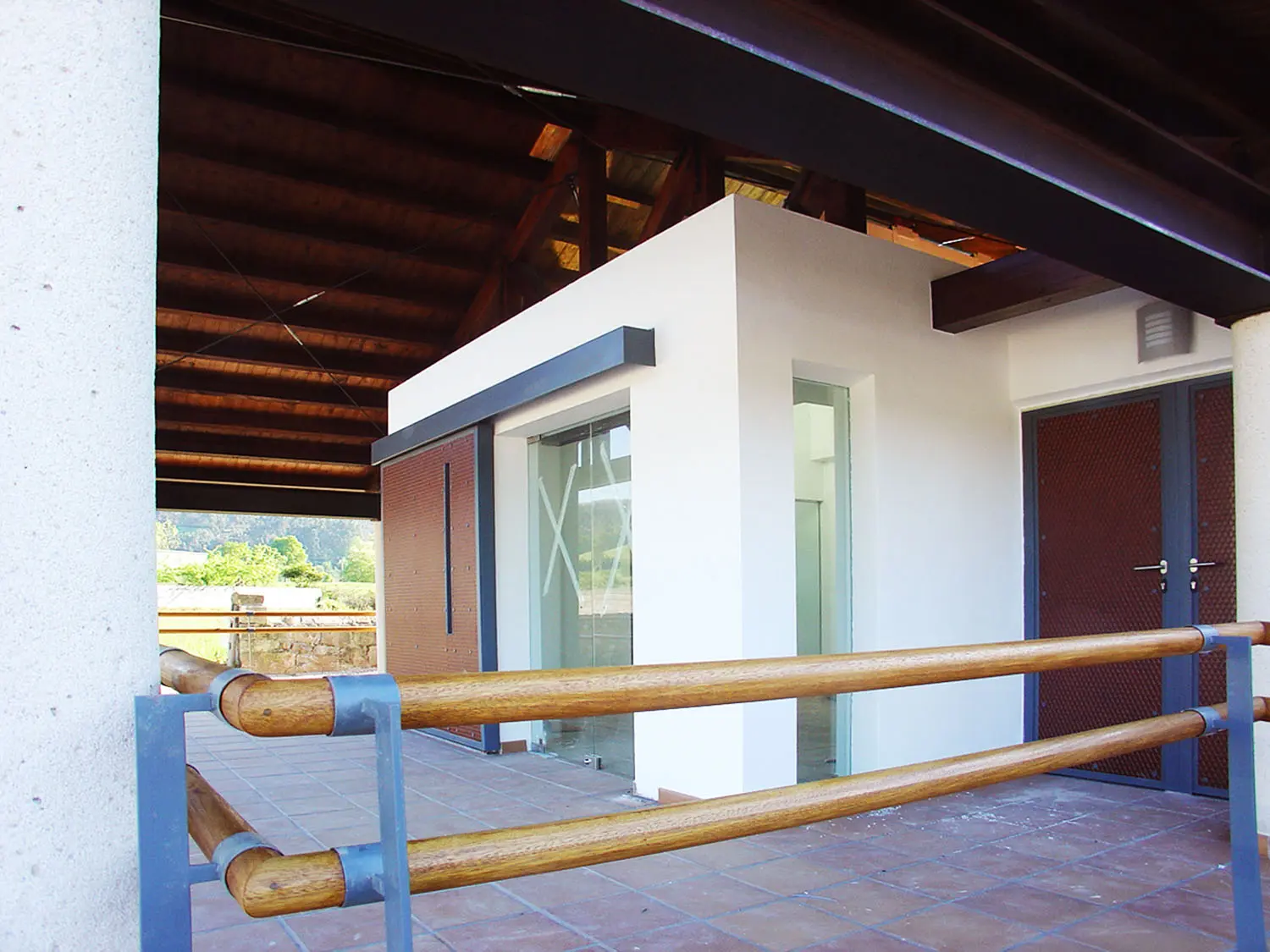 Se trata de un edificio de reducidas dimensiones situado de forma anexa al cementerio, en el exterior del núcleo urbano de Herrera de Ibio. El tanatorio se presenta como la mínima expresión para albergar el paquete programático originario de este proyecto. Éste plantea una gran cubierta a dos aguas de teja roja muy común en la zona, sustentada por una estructura de cerchas de madera. El edificio queda resuelto con el material perteneciente al muro de cerramiento del cementerio, el blanco de algunos paramentos y un tono gris oscuro para algunas carpinterías y vigas metálicas que forman parte del sistema estructural de la cubierta.