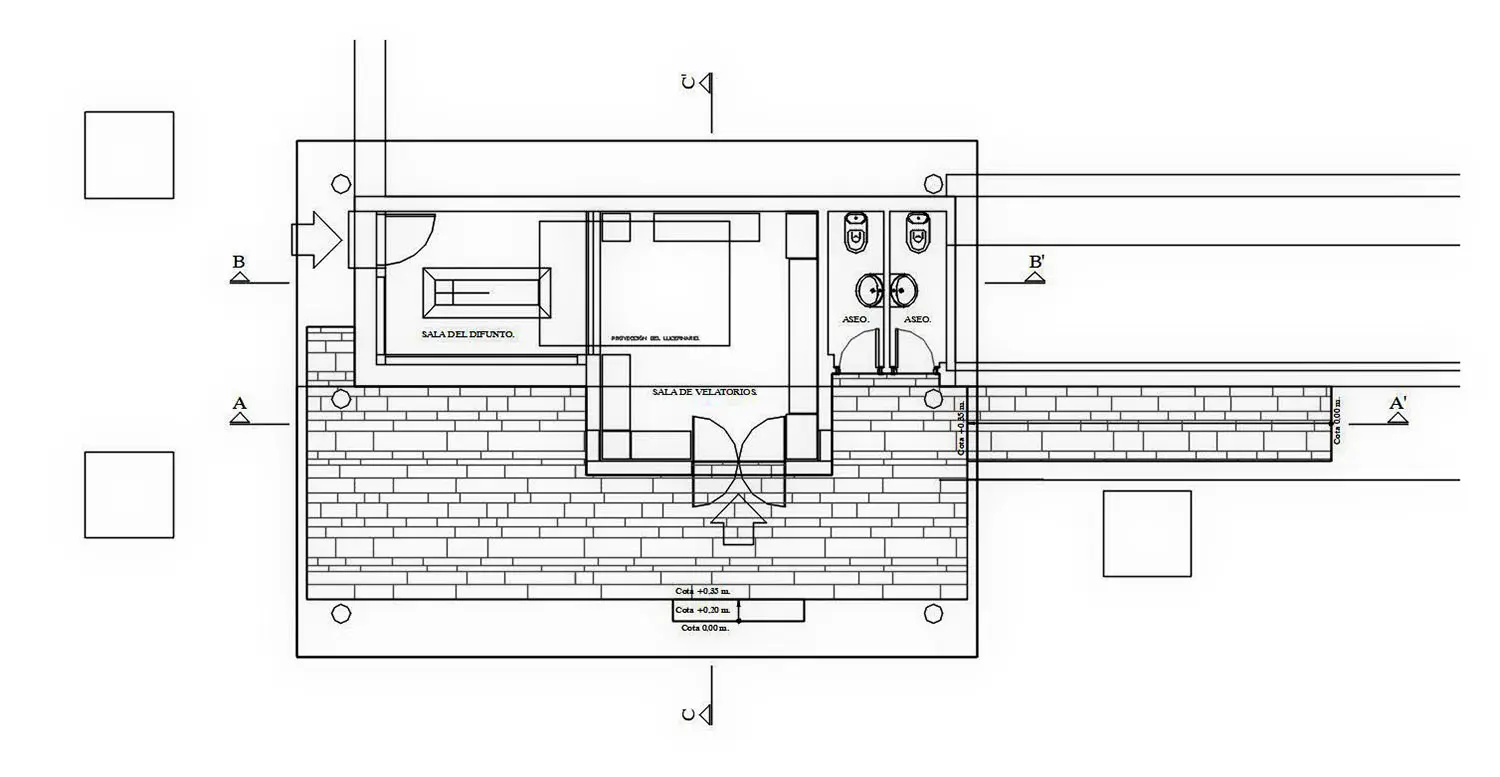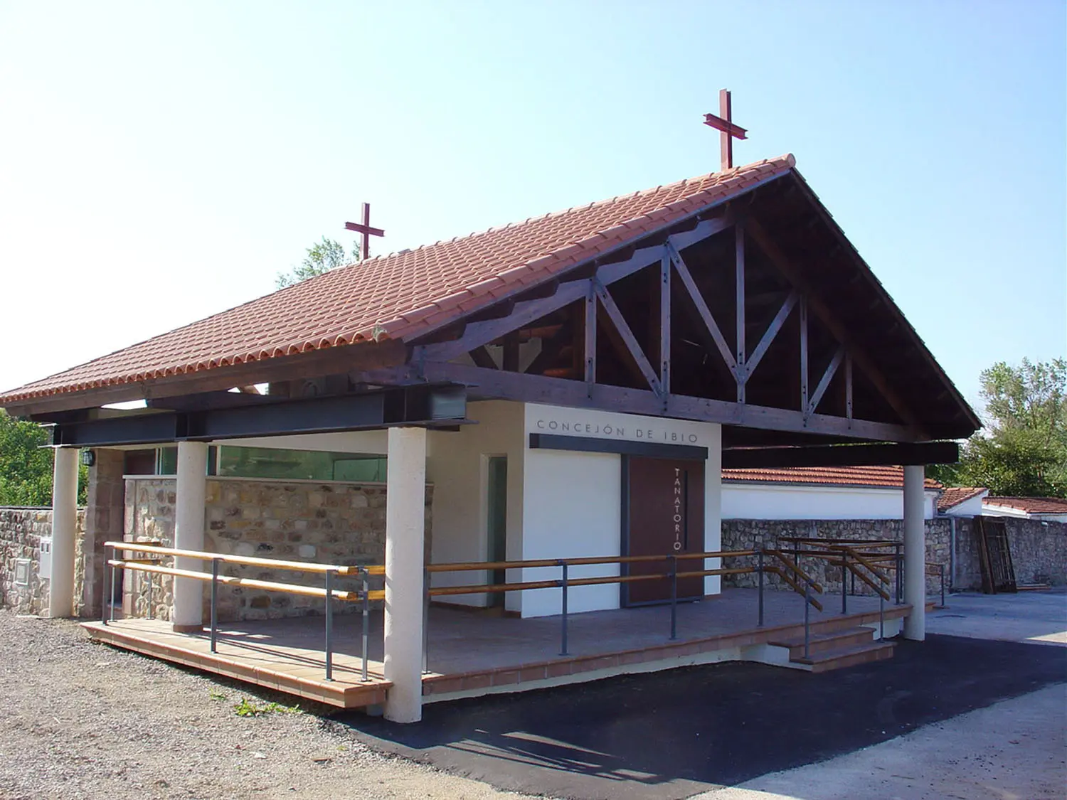 Satisfaciendo las necesidades del programa planteado por la junta vecinal de Ibio, se plantea una intervención con una importante componente paisajística. El edificio en todo momento queda integrado en el entorno en que se inserta y responde de forma muy elegante al uso para el que se destina. La totalidad del edificio queda desarrollado en una planta con tres espacios diferentes, la sala de velatorio, la sala para el difunto y los aseos.