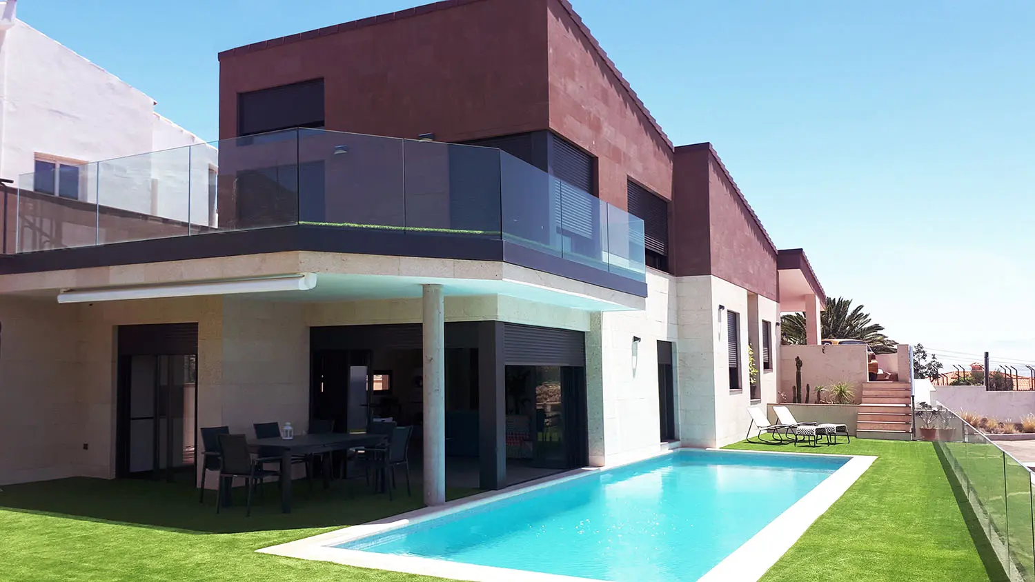 La parcela en la que se asienta la vivienda se encuentra en un entorno totalmente privilegiado, caracterizado por combinar en un mismo escenario el paisaje costero y zonas montañosas que conforman el fondo de cualquiera de sus paisajes. Como respuesta a esta premisa, la intervención en todo momento pretende integrarse en el paisaje sin renunciar al dominio de las magníficas vistas que nos proporciona el mismo.