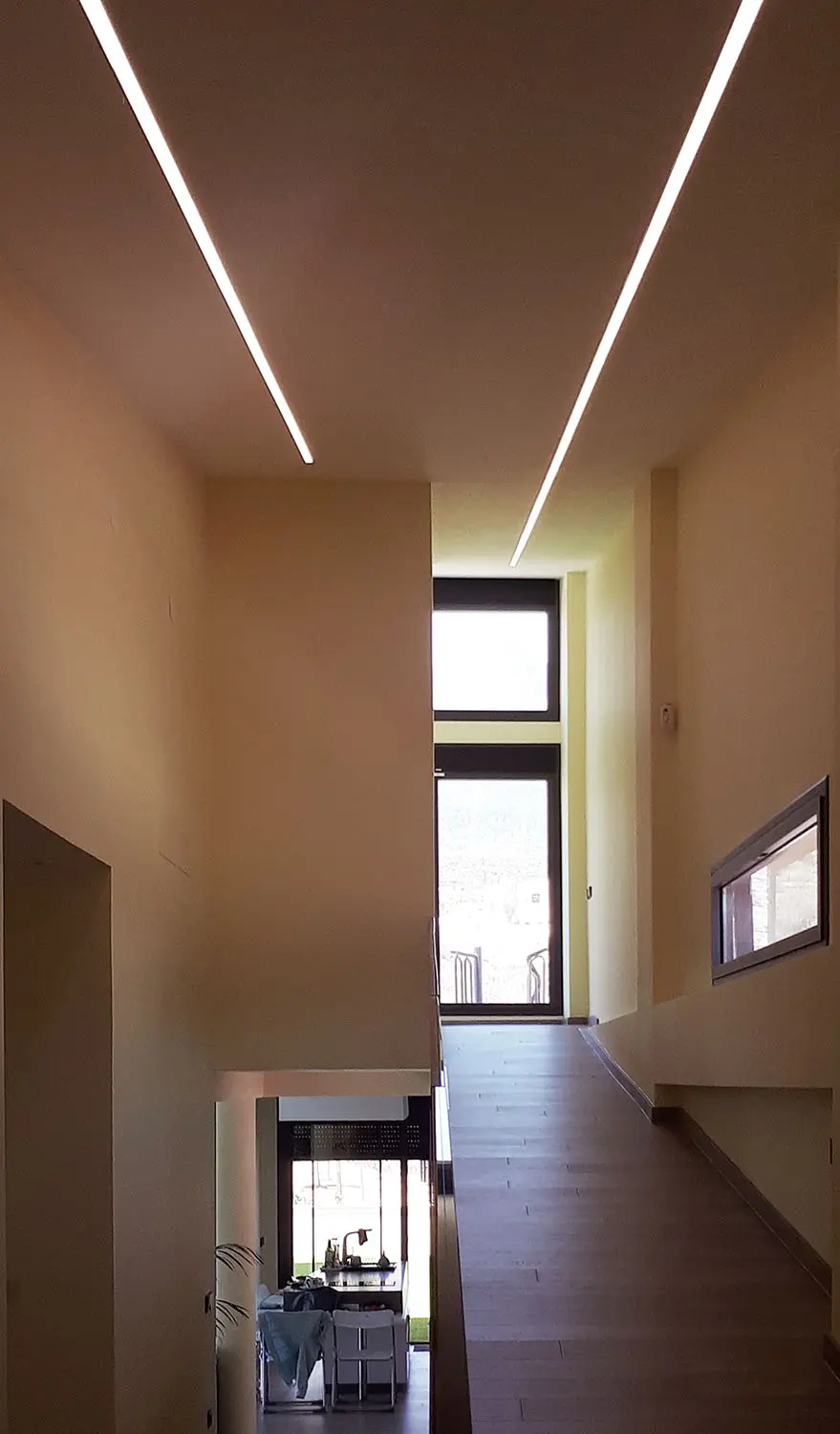 Satisfaciendo las necesidades del programa planteado por el promotor, se proyecta un edificio sin escaleras, que resuelve los desniveles preexistentes en la parcela mediante una entreplanta de acceso y rampas para comunicar con la planta baja y superior.